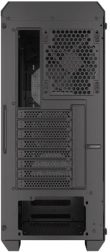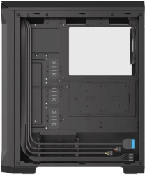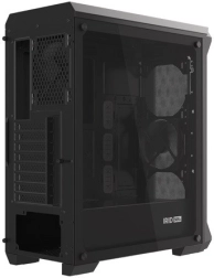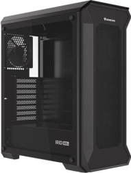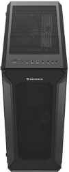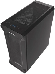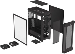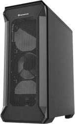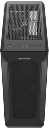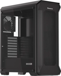 A perforált előlapi panellel és edzett üvegből készült oldalpanellel rendelkező ház eleganciát és tartósságot kölcsönöz. A fekete acél anyag esztétikus megjelenést biztosít.