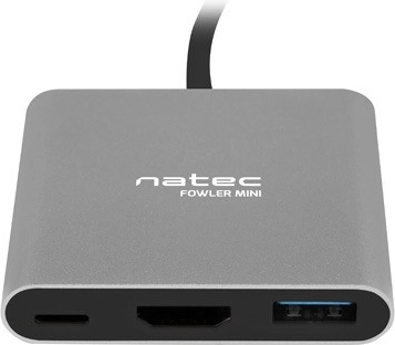 A NATEC Fowler Mini az eszköze egyetlen USB‑C portját univerzális elosztóvá alakítja. Lehetővé teszi külső monitor csatlakoztatását HDMI‑n akár 4K/30 Hz felbontásig, miközben USB‑C Power Delivery 60 W révén egyidejűleg táplálja a laptopot vagy a telefont, és USB 3.0 portot biztosít a perifériák gyors csatlakoztatásához. A tartós alumíniumház és a kompakt kivitel ideális társsá teszi utazáshoz és az íróasztalra is.