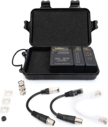Univerzális kábelteszter a LAN és a telefonvonalak gyors diagnosztikájához. Könnyedén ellenőrizheti a vezetékek helyes bekötését, feltárhatja a rövidzárakat, szakadásokat és az erek felcserélését, és a automatikus szkennelés illetve a kézi üzemmód segítségével a tesztet minden helyzethez igazíthatja. A beépített PoE teszter (802.3af/at) felismeri a tápellátás jelenlétét és a porton használt üzemmódot. Kompatibilis a RJ45, RJ12, RJ11 és BNC csatlakozókkal, valamint a Cat.3-tól Cat.7A-ig terjedő kábelekkel.