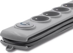 Átgondolt részletek segítik a rendezett munkateret: a felesleges kábel feltekerhetősége közvetlenül az elosztó testére és a bútorra szerelhető kialakítás segít tisztán tartani az asztalt és a padlót a vezetékektől. A szürke kivitel a legtöbb enteriőrhöz és készülékhez illeszkedik.