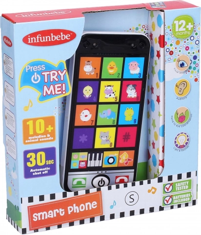 Szórakoztató interaktív okostelefon a legkisebbeknek, amely valódi érintőkijelzős telefont utánoz, és fejleszti az érzékelést és a finommotorikát. Kínál fény- és hangeffekteket, 10 állathang gombot, 6 zenei és effekt gombot, valamint zongorajáték módot. 30 másodperc után automatikusan kikapcsol, így kíméli az elemet.
