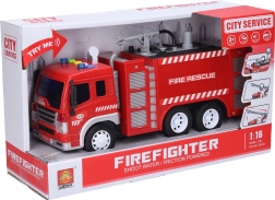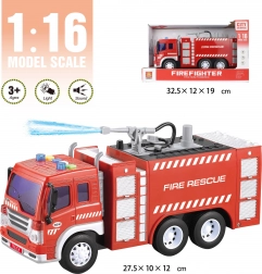 Élethű tűzoltóautó kis mentőknek, amely működő vízágyúval, fény- és hangeffektekkel, valamint 27 cm-es kompakt hosszal rendelkezik. Egyszerű vezérlés 4 gombbal, a tetőn elhelyezett praktikus víztartály pedig rengeteg akciódús szórakozást garantál.