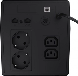 Két Schuko aljzat és két IEC kimenet a különböző eszközök csatlakoztatásához, az USB lehetővé teszi a PC-ről történő felügyeletet, az RJ45 IN/OUT pedig védi a hálózati kapcsolatot és a kommunikációt.