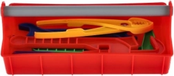 Könnyű és tartós, fogantyúval ellátott doboz, amely áttekinthetően együtt tartja mind az 5 szerszámot; ideális utazáshoz és a gyerekszobába.