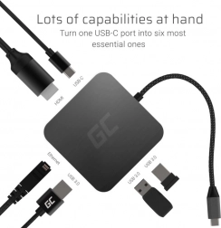 Adapter, adapter, USB-C HUB Green Cell 6 az 1-ben (USB 3.0 HDMI Ethernet USB-C) Apple MacBookhoz, Dell XPS-hez, Asus ZenBookhoz és másokhoz
