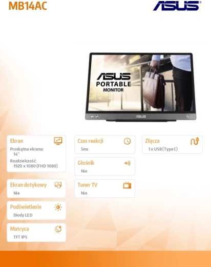 A 14 hüvelykes képátlójú ASUS hordozható monitor ideális választás mindenkinek, akinek rugalmasságra és hordozhatóságra van szüksége. Könnyű, mindössze 0,59 kg-os tömegével és 9 mm vastagságával kiváló útitárs. Az IPS technológiának és a Full HD felbontásnak köszönhetően éles és világos képet nyújt, amely bármilyen szögből jól látható.