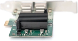 A Digitus PCI Express dupla portos gigabit hálózati kártya beépített Intel chipsettel van felszerelve, amely lehetővé teszi a két gigabites port megosztását. Minden port teljesen kompatibilis az IEEE802.3/u/ab szabványokkal és teljes gigabites csatlakozást biztosít. Támogatja az IPv4 és IPv6 protokollokat, valamint az óriás kereteket és a 2. réteg funkciókat, mint az IEEE802.1q VLAN és az IEEE802.3x Flow Control.</p>