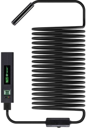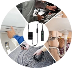 A csomag része a praktikus toldatkészlet – horog, mágnes és tükör, amelyekkel nemcsak láthat, hanem szűk helyekről apró tárgyakat is kiemelhet. A tömítő burkolat lehetővé teszi az ellenőrzést nedves környezetben vagy víz alatt is. A beépített 3,7 V/500 mAh Li–ion akkumulátor biztosítja a vezeték nélküli, mobil használatot.