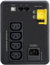 A praktikus kialakítás 4 IEC aljzattal a tartalék tápellátást és a túlfeszültség-védelmet ötvözi a kulcsfontosságú eszközök számára. A kompakt, modern dizájn könnyen elhelyezhető asztal alatt vagy polcon, a csendes működés pedig nem zavar munka közben.