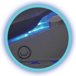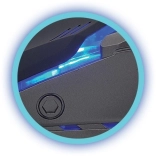 - Fekete kivitel kék hangsúlyokkal és háttérvilágítással