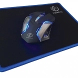 A teljes gamer szett REBELTEC SHERMAN egyesíti a háttérvilágításos billentyűzetet, a precíz gaming egeret, a kényelmes mikrofonos fejhallgatót és a könnyed siklást biztosító egérpadot. Ideális választás játékosoknak, akik gyorsan és kedvezően szeretnék fejleszteni felszerelésüket egységes, fekete–kék dizájnnal.