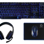 - Gamer szett (billentyűzet + egér + egérpad + mikrofonos fejhallgató)