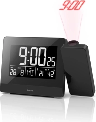 Élvezze a maximális kényelmet az idő leolvasásakor még az éjszaka közepén is. A 360°-ban elfordítható projektor a mennyezetre vagy a falra vetíti az időt pontosan oda, ahol szüksége van rá. A pontos időről az automatikus szinkronizálású DCF rádióvezérlés gondoskodik, a időzóna pedig szükség esetén kézzel módosítható.