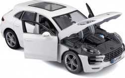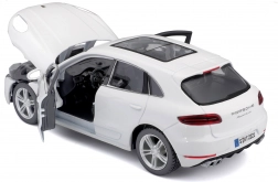 Kidolgozott Porsche Macan modell, amely lenyűgözi a részletes elemeivel, mint például a nyitható ajtók és motorháztető.