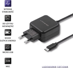 Megbízható QOLTEC hálózati töltő micro USB csatlakozóval, 12 W teljesítménnyel és akár 2,4 A áramerősséggel a gyors és biztonságos töltéshez. A túlfeszültség, túlterhelés, rövidzárlat és túlmelegedés elleni védelemnek, valamint a magas hatásfoknak köszönhetően alacsony energiafogyasztást és stabil működést biztosít otthon és irodában egyaránt. Elegáns fekete kivitel és minőségi kidolgozás teszi ideális fő vagy tartalék töltővé.