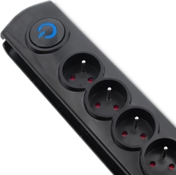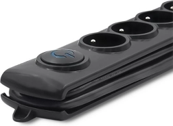 Az elegáns fekete kivitel minden enteriőrbe illik. Az átgondolt kialakítás lehetővé teszi a felesleges kábel felcsévélését az elosztó teste köré, és bútora rögzíthető is, ami segít rendben tartani a kábeleket és minimalizálni a kuszaságot.