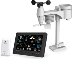 Ez a modern időjárás‑állomás Wi‑Fi csatlakozással és áttekinthető, 21,4 cm‑es LCD kijelzővel pontos, naprakész információkat szolgáltat a beltéri és kültéri időjárásról. A online adatátvitelnek és a mobilon vagy számítógépen való megjelenítésnek köszönhetően a hőmérséklet, páratartalom, szél és csapadék adatai mindig kéznél vannak. Ideális otthonokba, időjárás‑rajongóknak és okosotthonokhoz.