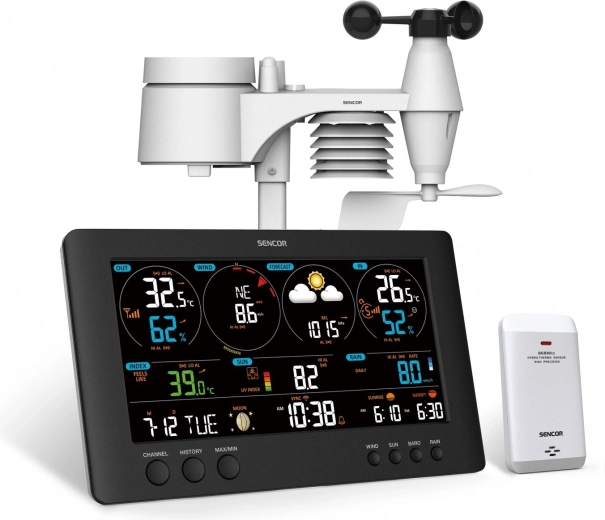 - Komplett monitorozás – hőmérséklet, páratartalom, szél, csapadék és légnyomás (a használt szenzortól függően).