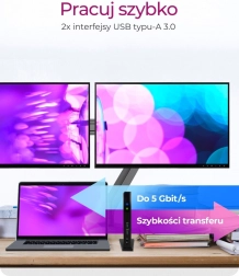 Az Icy Box DisplayLink asztali dokkoló állomás tökéletes megoldás laptopja vagy asztali számítógépe lehetőségeinek bővítésére. Segítségével akár 11 további eszközt és csatlakozót csatlakoztathat, beleértve a nagysebességű HDMI-t is, amely kiváló megjelenítést biztosít két monitoron egyszerre, akár 1980x1080 felbontással. A dokkoló rugalmasan elhelyezhető függőleges vagy vízszintes pozícióban, így könnyen igazítható a munkakörnyezetéhez.
