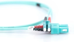 A duplex LC–SC OM3 patchcord a nagysebességű adatátvitelre és a stabil teljesítményre készült LAN-okban, adatközpontokban és aktív elemek közötti összeköttetésekhez. A kerámia ferrulás csatlakozók pontos illeszkedést és alacsony veszteséget garantálnak, míg az LSOH köpeny növeli a beltéri biztonságot.