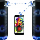 Belül 2 × 4" (102 mm) hangszóró dolgozik bass reflex kialakítással a kiemelt basszusért és tiszta magasakért 40 Hz – 20 kHz tartományban. A beépített 1200 mAh-s Li–Ion akkumulátor 4–8 óra zenelejátszást biztosít, a töltés kényelmesen micro USB-n keresztül történik. A vezérlést multimédiás gombok, forgóvezérlő és áttekinthető LED kijelző segíti. A hangszórók és a talp RGB megvilágítása az M gomb hosszú lenyomásával kikapcsolható.