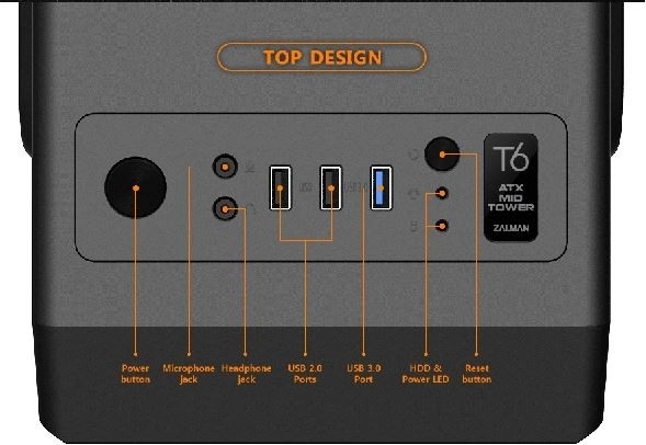 A beépített 120 mm-es hátsó ventilátor kiváló légcserét biztosít. A T6 házban összesen akár 4 ventilátor is elhelyezhető (a hátsó ventilátort is beleértve).