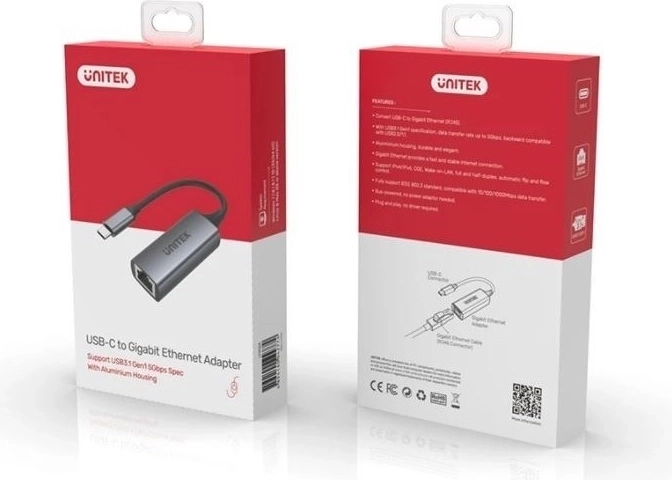 Szüksége van megbízható és gyors hálózati kapcsolatra? A UNITEK kompakt USB‑C–RJ45 adaptere USB 3.1 Gen 1 csatlakozáson keresztül 1000 Mb/s sebességű gigabites Ethernetet ad a laptopjához. Stabil, vezetékes kapcsolatot, 10/100/1000 Mb/s támogatást és energiatakarékos üzemmódokat kínál, masszív alumínium házban.