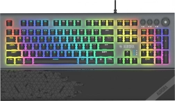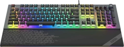 Az intuitív szoftver (EN/PL) támogatja a makrókat, a billentyűk kiosztását és a fényjelenetek részletes beállítását. A mágneses RGB szálas csuklótámasznak köszönhetően ergonomiát és látványos megjelenést kap, amely új szintre emeli a gaming állomását.