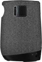 A textilborítású hengeres forma felső vezérléssel kényelmes hordozhatóságot kínál, míg a beépített harman/kardon hangszóró (modellkiviteltől függően) tiszta, meglepően telt hangzást ad. A csatlakoztatás egyszerű – rendelkezésre áll HDMI a képforrásokhoz, USB tápellátáshoz vagy adathordozókhoz, valamint Bluetooth a vezeték nélküli hanghoz. A mobilról történő vezeték nélküli tükrözés gyors tartalommegosztást biztosít.