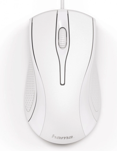 A fehér Hama MC-200 optikai egér pontos kurzort és kényelmes használatot kínál a szimmetrikus kialakítás és a vezetékes csatlakozás révén.