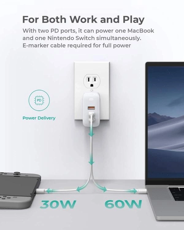 Kompakt és hatékony: 20%-kal kisebb mint az Apple 87 W-os töltője, a háromszoros portszám és 40%-kal alacsonyabb energiafogyasztás ellenére. Ideális 15"-os MacBook Pro-hoz és más nagy teljesítményű, USB‑C csatlakozós laptopokhoz. Utazásbarát kialakítás a maximális hordozhatóságért bárhová. Hasznos otthon, irodában és nyaraláson is.
