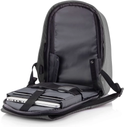 A hátizsák csak a hátoldal felől nyitható, ami megnehezíti a tolvajok hozzáférését. A rejtett zsebek és cipzárak további védelmet nyújtanak.