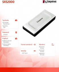A Kingston XS2000 SSD lehetővé teszi az olvasás/írás akár 2000MB/s sebességgel, ami gyors és hatékony adatfeldolgozást biztosít.