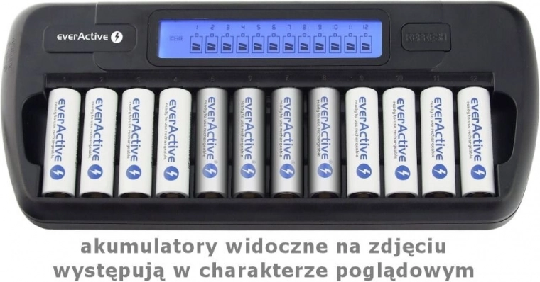 Az EverActive NC-1200 processzorgyors töltő úgy lett tervezve, hogy hatékonyan tölthessen akár 12 AA/AAA akkumulátort. Az egyes elemekbe épített intelligencia optimalizálja a töltési folyamatot, biztosítva a maximális teljesítményt.