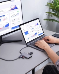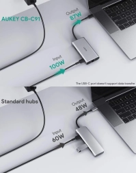 Az Aukey CB-C91 5 Gb/s adatátviteli sebességet biztosít, és a HDMI csatlakozónak köszönhetően nem jelent gondot a legfeljebb 4K @ 30 Hz felbontás továbbítása a csatlakoztatott kijelzőre. A gigabites Ethernet port emellett akár 1 000 Mb/s hálózati sebességet is támogat. Kedvenc eszközeit is gond nélkül töltheti. A Power Delivery technológia révén a laptopja akár 100 W teljesítménnyel táplálható, még akkor is, ha a hub egyéb funkcióit használja. A töltés még soha nem volt ilyen gyors; ehhez a magas szintű működési standardhoz már az első naptól hozzászokik, és az Aukey CB-C91 felbecsülhetetlen (és nélkülözhetetlen!) támasza lesz.