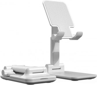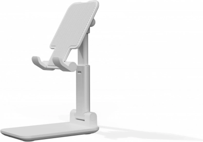 Fehér teleszkópos S9 smart állvány telefonokhoz és tabletekhez. Csúszásmentes, hordozható, kompakt megoldás az eszközök biztonságos elhelyezésére.