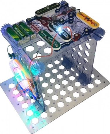 Minden alkatrész könnyedén a átlátszó rácsra pattintható. Az építés gyors, áttekinthető, és ideális az elektronika első lépéseihez.