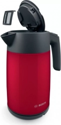 Stílusos, 1,7 literes BOSCH gyorsforraló elegáns piros színben, gyors vízmelegítéssel és kényelmes kezeléssel. A egycsészés jelölő segítségével pontosan annyi vizet melegíthet, amennyire szüksége van, így időt és energiát takarít meg. A praktikus, formázott kiöntő pontos, cseppmentes töltést biztosít, míg a jól olvasható vízszintmérő megkönnyíti a feltöltést. A biztonságos működésről a hármas biztonsági rendszer gondoskodik, a kényelmet pedig a gombnyomásra nyíló fedél és a kábeltartó rekesz egészíti ki.
