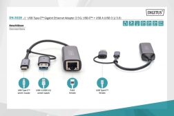 Bővítse ki laptopja vagy asztali számítógépe lehetőségeit a Digitus USB-C és USB-A adapterrel az RJ45 2,5 Gigabit Ethernethez, amely akár 2,5 Gbps internetkapcsolatot kínál és támogatja a Plug and Play funkciót.