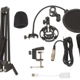 - Teljes készlet: Kábel, adapter, tartó, szivacs borítás, pop szűrő, szerelési elemeket tartalmaz.