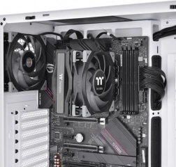 A Thermaltake TOUGHAIR 310 hűtő aszimmetrikus lamella kialakítással rendelkezik, mely jobb légáramlást és kisebb turbulenciát biztosít. Ez növeli a hűtés hatékonyságát és meghosszabbítja a processzor élettartamát. A négy U-alakú réz hőcső, 6 mm átmérővel, hatékony hőátadást garantál a processzorról az alumínium lamellákra, amely támogatja a hőelvezetést akár 170 W TDP-ig. A 120 mm-es ventilátor nagy statikus nyomással akár 2000 fordulat/perc sebességre képes, optimális hűtési teljesítményt biztosítva, miközben alacsony zajszintet tart fenn. Különböző processzorfoglalatokkal való kompatibilitása miatt a TOUGHAIR 310 univerzális megoldást nyújt számos rendszerhez.