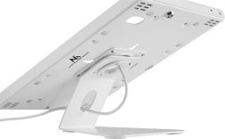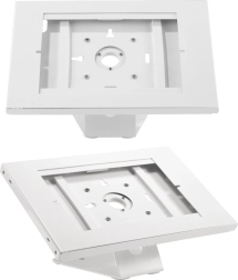 Elegáns és megbízható tablet állvány, ami alkalmas ideiglenes és tartós használatra egyaránt, zárt fémszerkezettel a biztonság és tartósság érdekében. Ez az állvány lehetővé teszi a tablet pozicionálását vízszintesről függőlegesre, ami ideális a tartalmak igényekhez való igazításához.