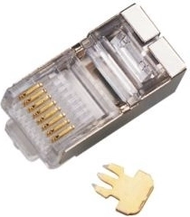 Univerzális, átmenő kivitelű RJ45 8P8C csatlakozó STP árnyékolással, Cat 5e kategóriájú kábelekhez. Az átmenő kialakításnak köszönhetően gyors és pontos szerelést tesz lehetővé, egyenletes ér-elosztással és megbízható krimpeléssel, a vezetékek sorrendjének vizuális ellenőrzésével.