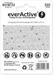 EverActive 9V 320 mAh Ni-MH akkumulátor ideális választás professzionális felhasználásra. A kész a használatra technológiával kiváló alternatíva az alkáli elemek helyett.