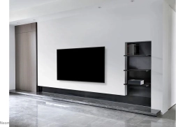 Csak 2,3 cm mély, a tartó csöndes része a belső térnek, lehetővé téve a televíziónak, hogy összefonódjon a környezetével.