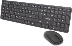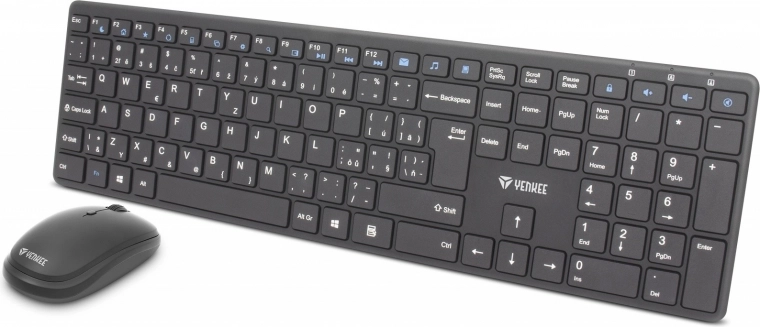 A vezeték nélküli billentyűzet és egér készlet Yenkee Tibe jellemzője a megbízható 2,4 GHz-es csatlakozás, akár 10 méteres hatótávolsággal. A billentyűzet numerikus blokkal és további funkciókkal van felszerelve a hatékony vezérlés érdekében. Az optikai egér lehetővé teszi a felbontás beállítását 800-tól 1600 DPI-ig, ami egyénre szabott érzékenység testreszabást biztosít.