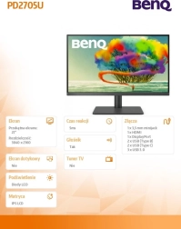 Fedezd fel a részletgazdag képet és a hű színeket a 27"-es IPS panelen 4K felbontással, amely ideális grafikai tervezéshez, fotó- és videószerkesztéshez. A BENQ PD2705U a teljes felületen egyenletes megjelenítést és stabil betekintési szögeket kínál. A 5 ms-os gyors válaszidőnek és a minőségi háttérvilágításnak köszönhetően a kép folyamatos és tiszta.
