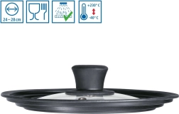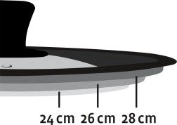 Az univerzális fedő praktikus megoldás, ha hiányzik egy fedő bizonyos edényekhez. Egyetlen fedő akár három különböző méretű fedőt is helyettesíthet, amelyek átmérője 24, 26 vagy 28 cm. Az átlátszó kialakítás révén könnyedén nyomon követheted az ételkészítést.