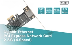 A DIGITUS PCIe Gigabit kártya különféle szabványok támogatásával rugalmas csatlakozást biztosít. Támogatja az IEEE802.3u szabványt a Fast Ethernethez és az IEEE802.3ab szabványt a Gigabit Ethernethez, akár 2,5 Gbps sebességgel. Tartalmazza az IEEE802.3x duplán teljesítő adatvezérlést és a Wake-on-LAN funkciót a könnyebb hálózati csatlakozás és menedzsment érdekében.