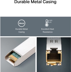 Az SFP modul 1000BASE-T RJ45 TP-LINK ideális választás a gigabites konnektivitás meglévő rézkábelezésen történő bővítéséhez. Akár 100 méteres adatátvitelt biztosít az SFP csatoló és a gigabites RJ45 port között, és a plug and play kialakításnak köszönhetően pillanatok alatt üzembe helyezhető - bonyolult konfiguráció nélkül.